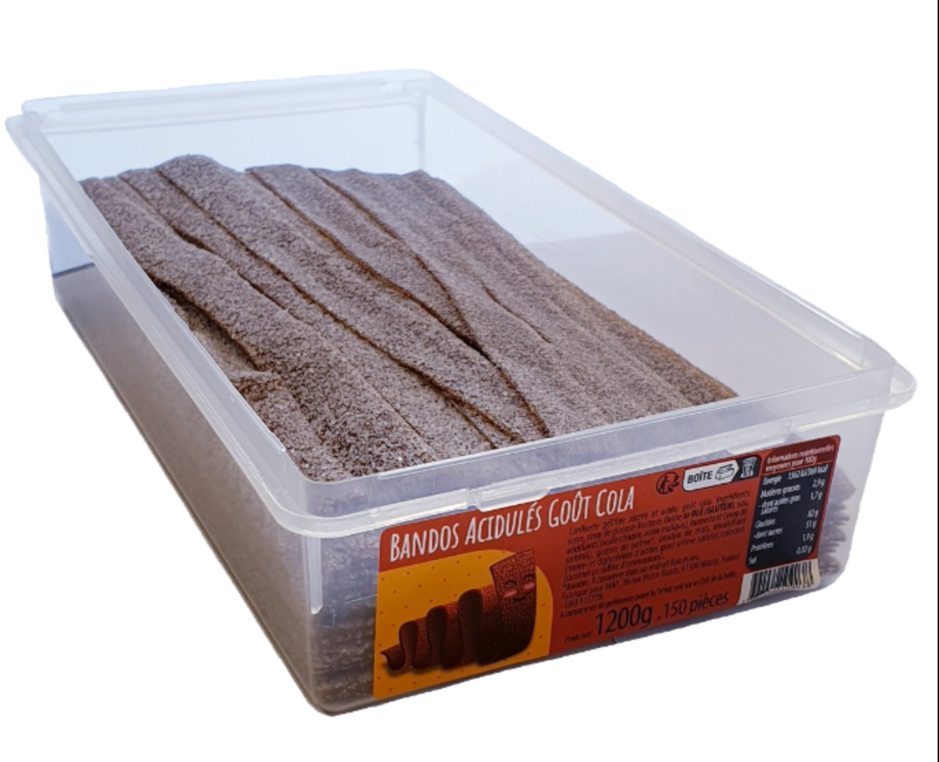 Ingrédients :sucre, sirop de glucose-fructose, farine de BLE, acidifiants :acide malique, acide citrique; dextrose, huile de palme,arôme, colorant : caramel au sulfite d’ammonium; antioxydants :acide ascorbique, E306.