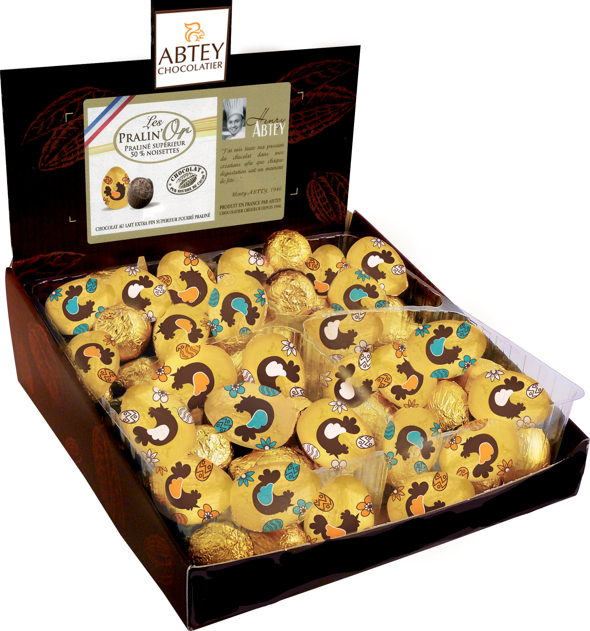 Découvrez le présentoir d’œufs pralinés Abtey Chocolatier, une gourmandise exquise pour les amateurs de chocolat. Chaque œuf est composé d’un praliné supérieur aux noisettes, enrobé d’un délicieux chocolat au lait extra fin. Fabriqués en France avec un savoir-faire artisanal, ces œufs en chocolat sont une véritable invitation à la dégustation.