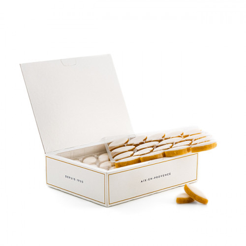 La boîte de 72 calissons – 950g est idéale pour les cadeaux gourmands, les fêtes de fin d’année ou les coffrets d’entreprise. Élégante et raffinée, elle reflète l’art de vivre provençal et sublime l’authenticité de cette spécialité. Sa présentation soignée en fait un présent prestigieux et apprécié de tous.