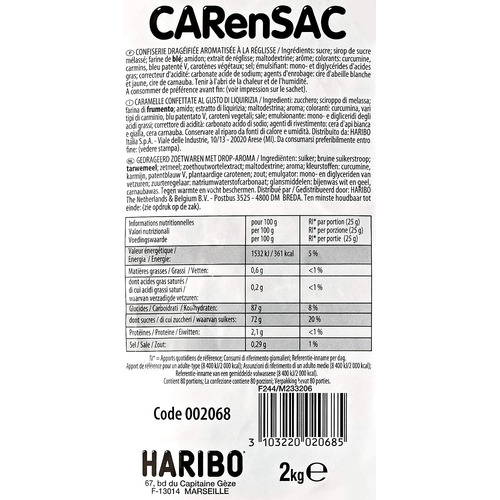Ce sachet comprend 1 kg Carensac HARIBO en vrac.