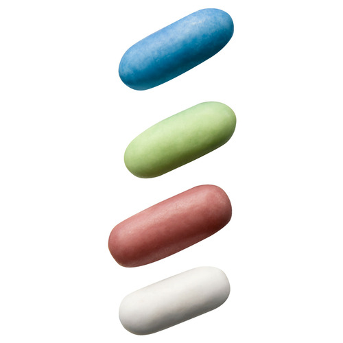 Ingrédients : sucre; sirop de sucre mélassé; farine de blé; amidon; extrait de réglisse; maltodextrine; arôme; colorants: curcumine, carmins, bleu patenté V, carotènes végétaux; sel; émulsifiant: mono- et diglycérides d'acides gras; correcteur d'acidité: carbonate acide de sodium; agents d'enrobage: cire d'abeille blanche et jaune, cire de carnauba.