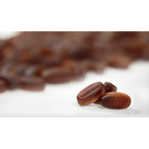 Ingrédients : Gomme arabique, sucre, miel (9,6 %), suc de réglisse (1,3 %), agents d’enrobage : cire de carnauba