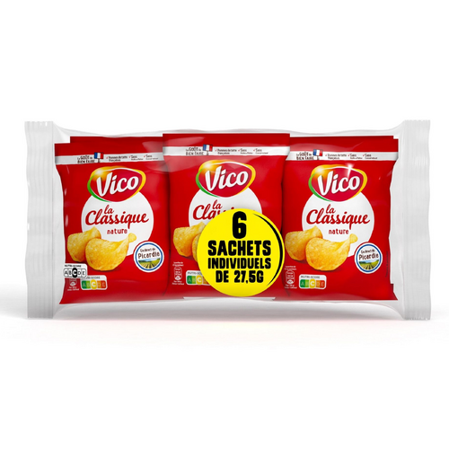 Leur saveur délicatement salée met en avant la qualité de la pomme de terre sans artifice, pour un plaisir pur et authentique. Idéales pour accompagner un sandwich, un pique-nique ou une pause gourmande, les Vico La Classique en format 27,5 g sont parfaites à emporter partout.