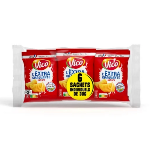 Craquez pour la gourmandise irrésistible des Vico Chips L’Extra Craquante, la référence des chips ultra croustillantes made in France. Grâce à une recette unique et un savoir-faire reconnu depuis 1955, Vico propose des chips encore plus dorées, fines et légères, pour un plaisir intense à chaque bouchée.