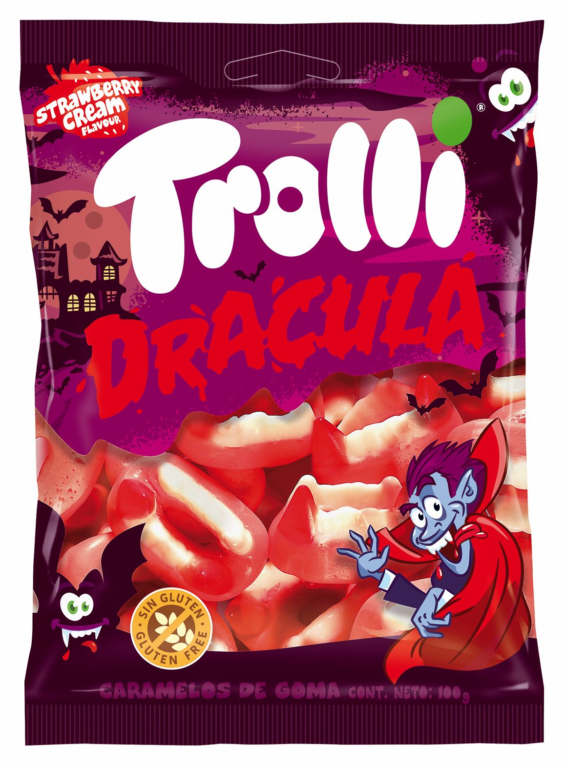 Les Dracula Trolli 100g sont des bonbons gélifiés en forme de têtes de vampire, idéaux pour Halloween. Leur texture moelleuse et leur goût fruité unique combinent une légère acidité avec une douceur agréable. Présentés dans un sachet de 100 grammes, ces bonbons sont parfaits pour partager ou pour se faire plaisir avec une friandise ludique et savoureuse.