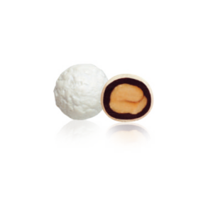 Ingrédients : Assortiment de Confiseries: amande catalane blanche dragéifiée au sucre moucheté poudre de cacao, séduction 70 % de cacao de couleur bleu mat et Chocoviennoise galet ( amande grillée enrobée de chocolat et sucre).