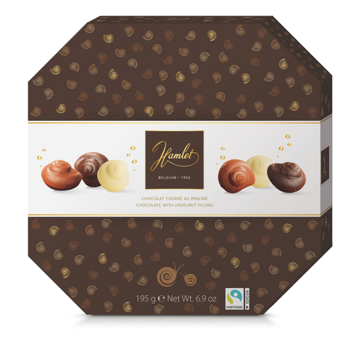 Offrez un plaisir gourmand et raffiné avec ces escargots en chocolat fourrés de la marque Hamlet, fabriqués en Belgique avec un savoir-faire chocolatier reconnu. Ce joli coffret de 195g contient des figurines en forme d’escargots en chocolat au lait, chocolat blanc et chocolat noir, toutes garnies d’un délicieux fourrage praliné.