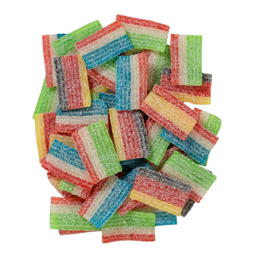 Ingrédients : Sirop de glucose, sucre, gélatine, acidifiants, arômes, colorants d’origine végétale, agents d’enrobage : cires végétales