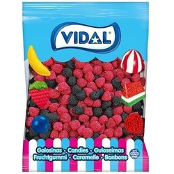 Plongez dans l’univers fruité et coloré des Moritas Vidal ! Ces délicieux bonbons gélifiés en forme de mûres offrent un mélange parfait entre une texture tendre et un enrobage croquant grâce à leurs petites billes de sucre colorées.