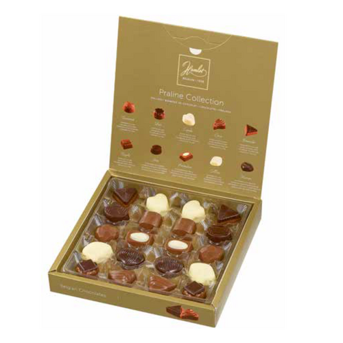 Offrez un moment de pur plaisir avec le coffret Collection Pralines 200g de Hamlet, une marque belge reconnue pour son savoir-faire chocolatier. Ce superbe assortiment de pralines belges enrobées de chocolat au lait, noir et blanc est soigneusement présenté dans une boîte élégante, accompagnée d’un sac cadeau coordonné, pour une présentation encore plus soignée et festive.