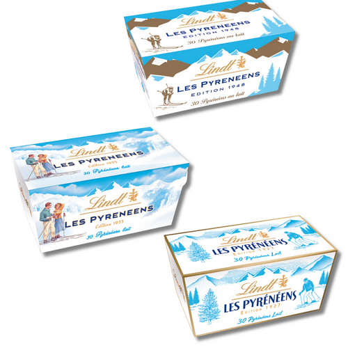 Nés d’une recette inspirée de l’air pur des montagnes, les Pyrénéens sont des chocolats emblématiques, alliant douceur, légèreté et finesse. Grâce au savoir-faire des Maîtres Chocolatiers Lindt, chaque bouchée est un concentré de plaisir, enveloppée individuellement dans un papier alu aux reflets argentés, évoquant les sommets enneigés.