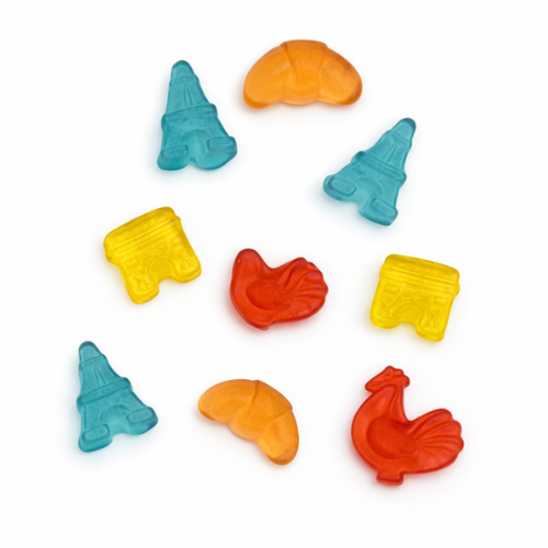 Laissez-vous séduire par l’élégance et le charme français avec les bonbons Cocorico. Ce délicieux assortiment renferme des douceurs tendres et douces aux formes emblématiques de l’Hexagone : croissants dorés, majestueuses tours Eiffel, fiers coqs gaulois et imposants arcs de triomphe.