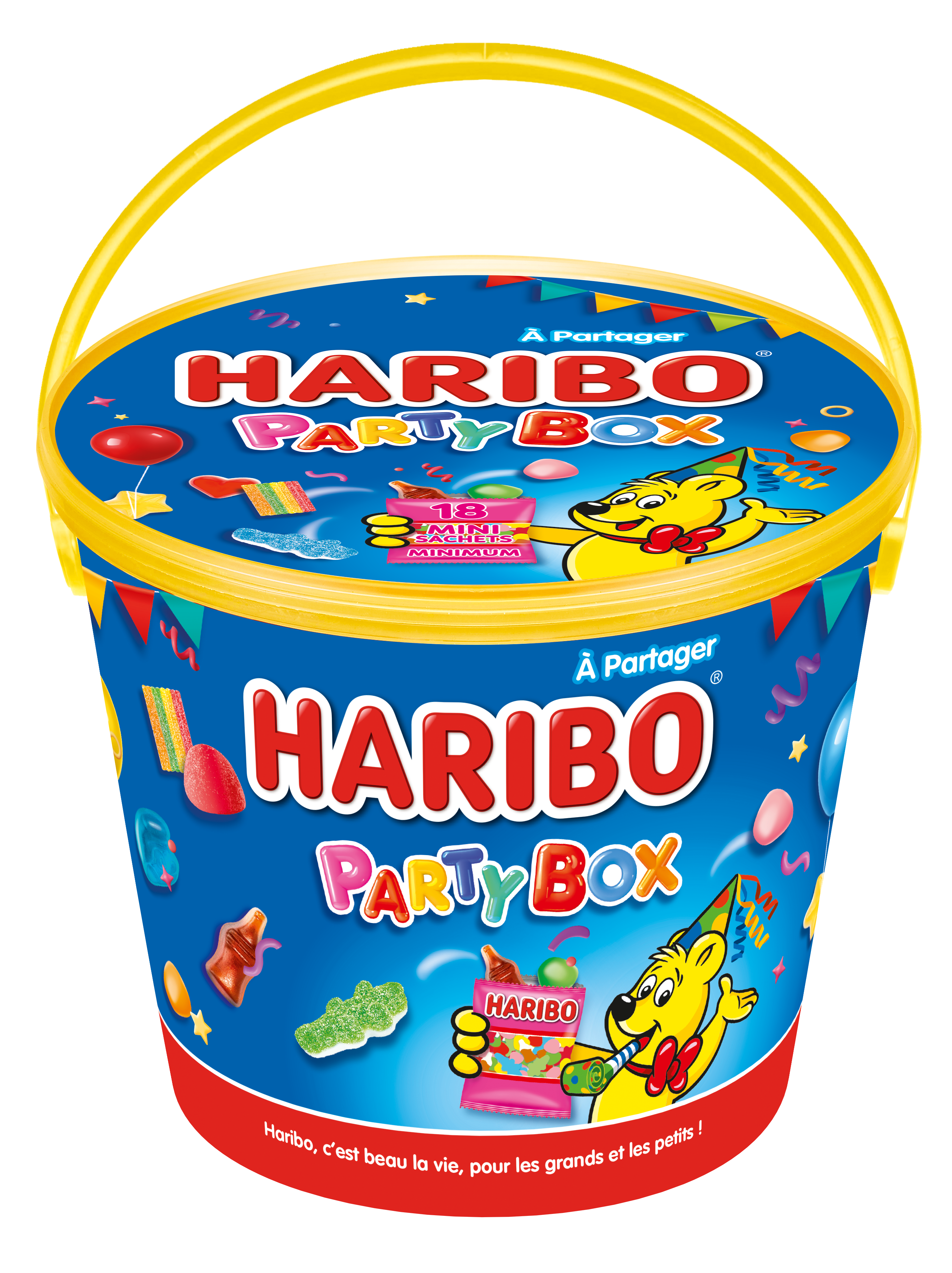 Conçu pour les fêtes, anniversaires, événements, ou simplement pour se faire plaisir, le Party Box Haribo est prêt à partager et dispose d’un couvercle refermable pour conserver toute la fraîcheur des bonbons. Son format pratique et généreux permet de régaler jusqu’à 20 personnes !