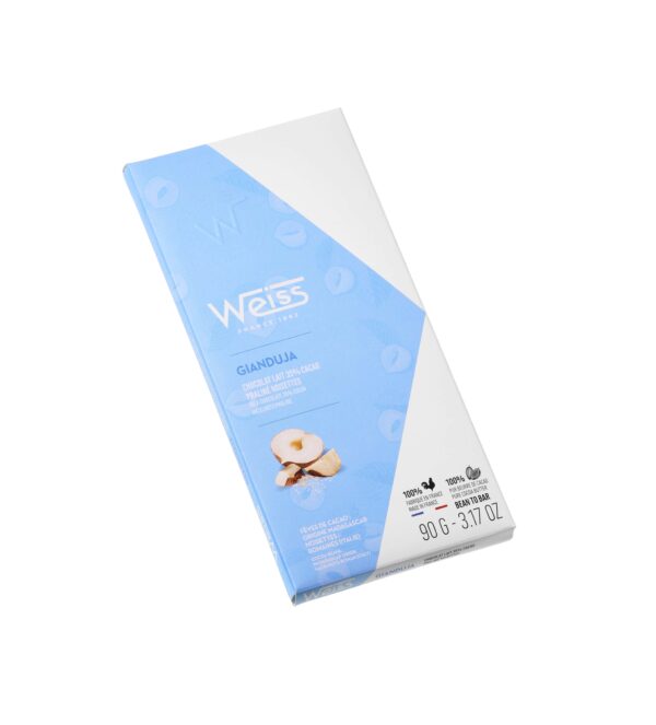 Découvrez notre nouvelle tablette de chocolat au lait Gianduja 90g avec son nouveau moule plus moderne et plus fin pour une dégustation optimisée, son design coloré et raffiné avec gaufrage et son emballage 100 % recyclable et refermable.