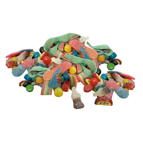 Ingrédients : Eau, sucre, Humectant, sirop de sorbitol, farine de blé, acide citrique, acide malique émulsifiant mono- et diglycérides, d’acides gras correcteurs, d’acidité malate, acide de sodium, citrate tricalcique, arôme extrait de baie de sureau, agent d’enrobage,